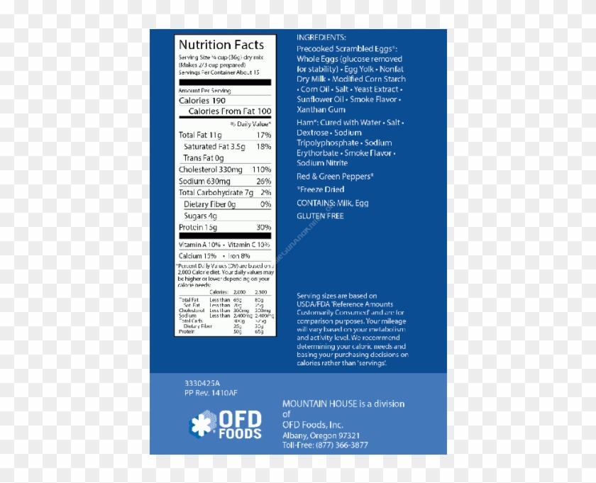 Mountain House Breakfast Skillet Nutrition Facts, HD Png ...