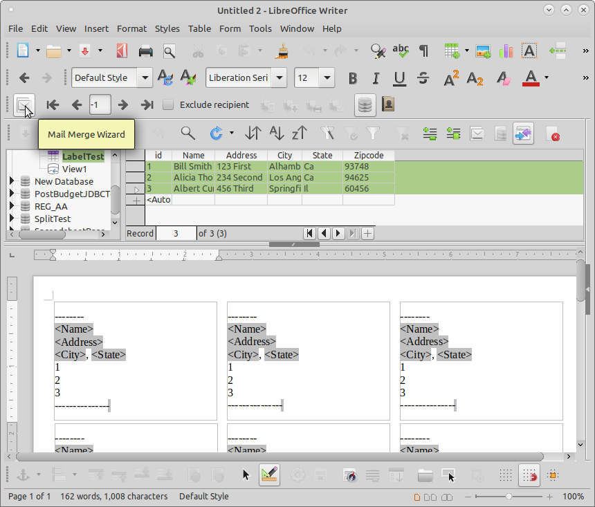 Preparing Labels In LibreOffice - YouTube Nov 29, 2017 ... Address Label Merge in LibreOffice 7 · LibreOffice Base (61) Standalone Forms · How to print mailing labels from Excel · Tutorials · LibreOffice: ... Printing Address Labels in LibreOffice - YouTube Dec 5, 2012 ... Key moments. View all · convert this into a database · convert this into a database · open the database for editing finish · open the database for ... HOWTO - Print Labels using LibreOffice Choose Print from the File menu. An alert window will pop that says: "Your document contains address database fields. Do you want to print a form letter?".